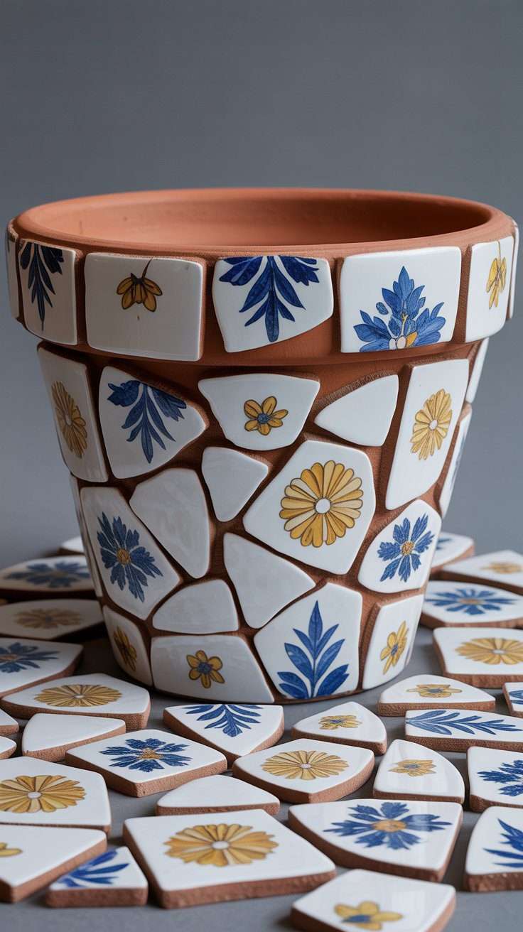 This is one of the prettiest ways to upcycled broken china, especially if you love garden crafts. Small floral plate pieces look gorgeous on terracotta pots, and the finished result feels colorful, vintage, and full of personality.