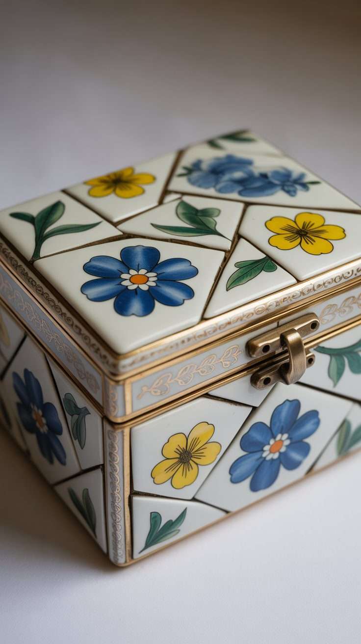 A plain jewelry box can become so much prettier with broken china details. This project is perfect for girls.