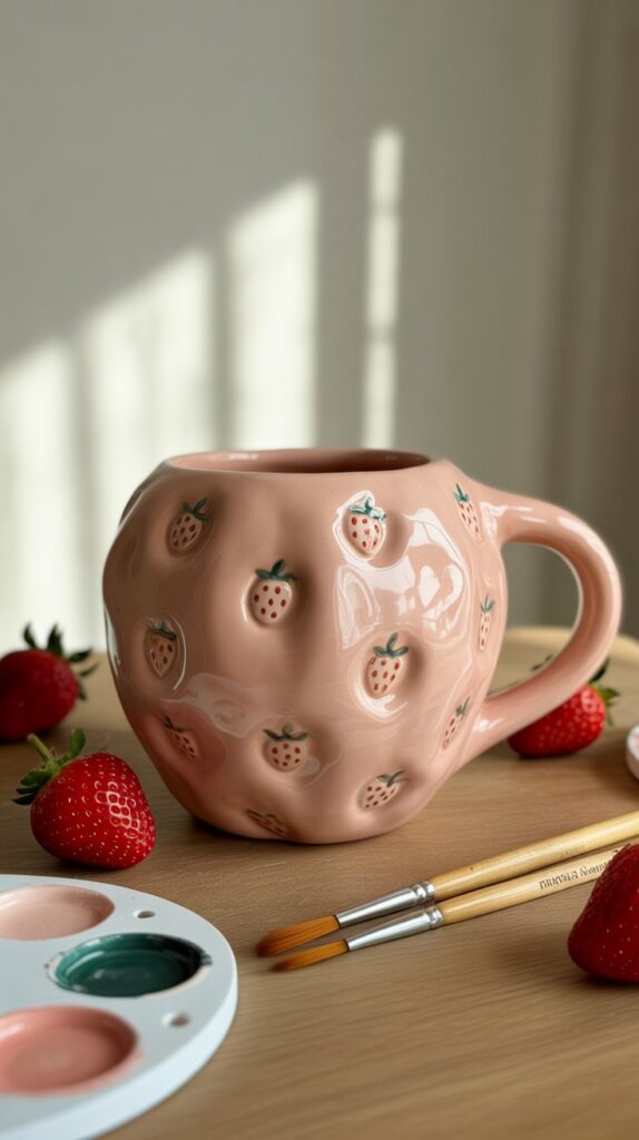 Few things are as charming as strawberry ceramic mugs. From pottery painting strawberry bowls to strawberry mug pottery painting, these fruit-inspired pieces bring a playful, fresh feel to your kitchen. They’re often found in pretty mugs collections because they feel handmade, fun, and chic all at once.