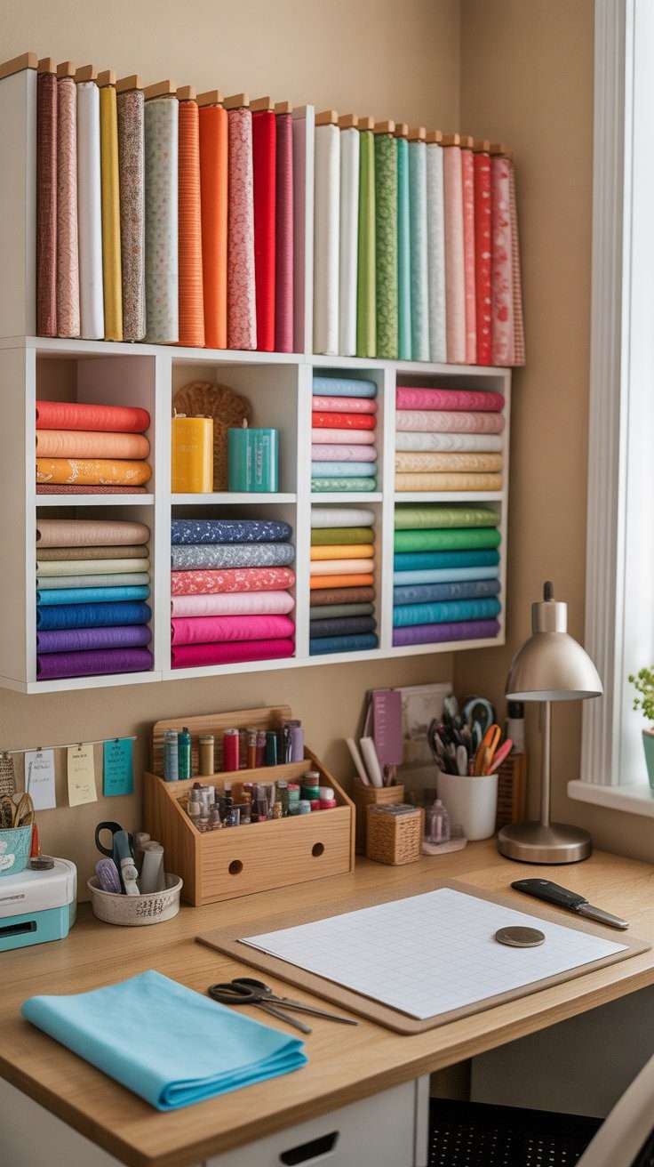 - Daily tools (scissors, rotary cutter, thread, pins) stay within arm’s reach