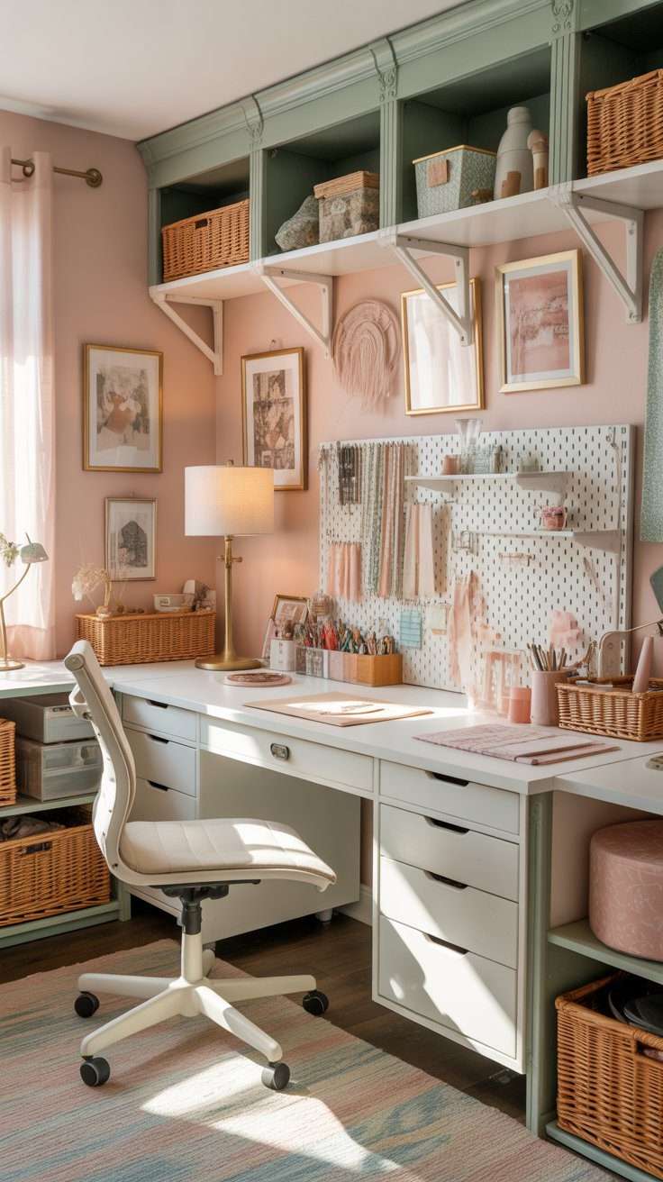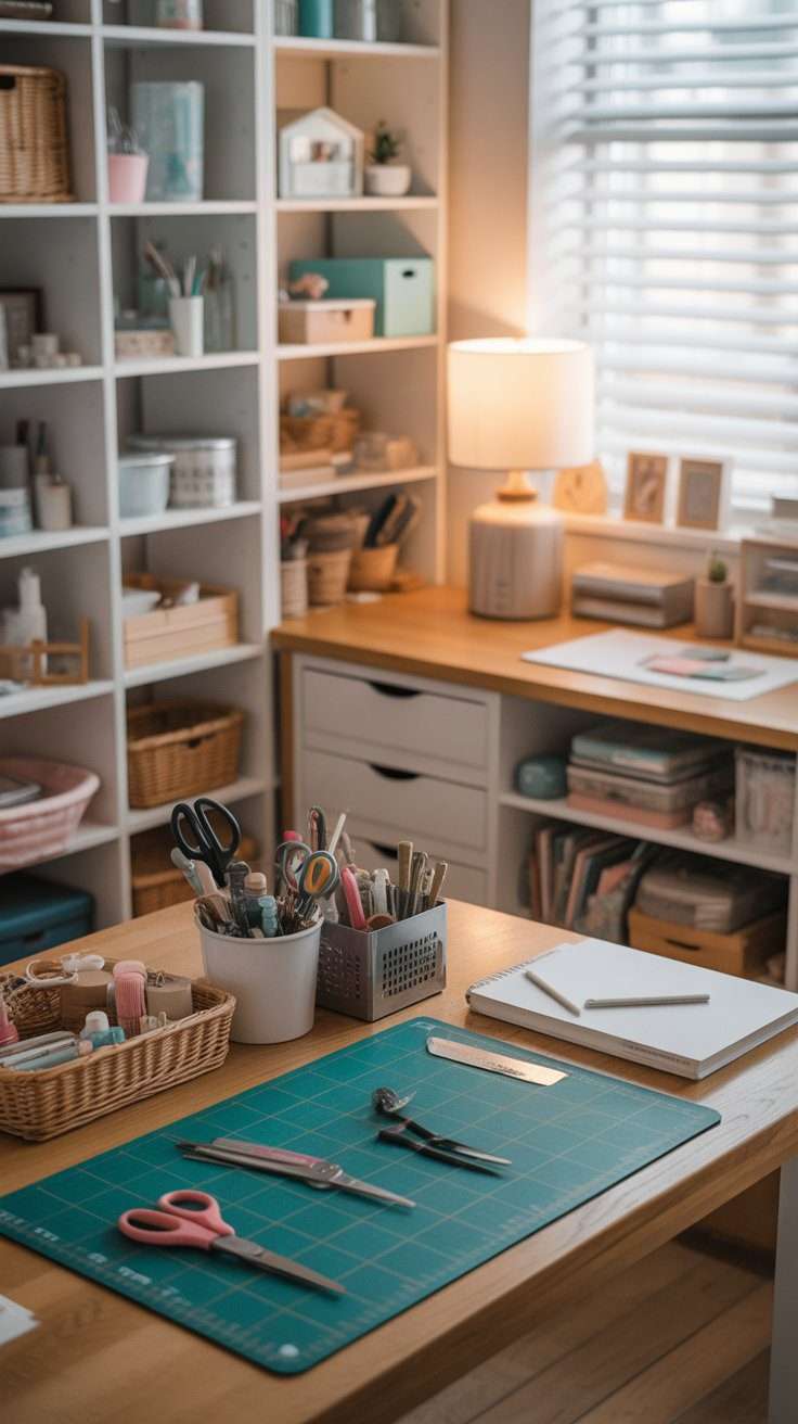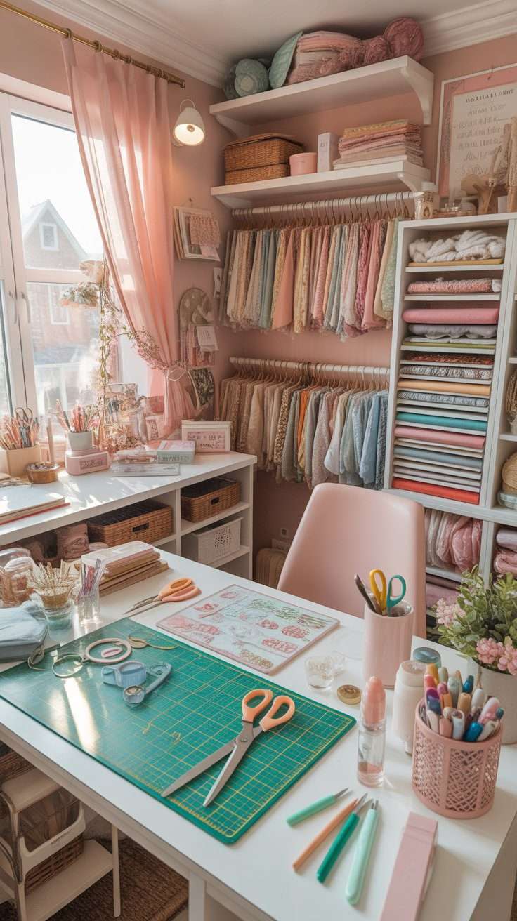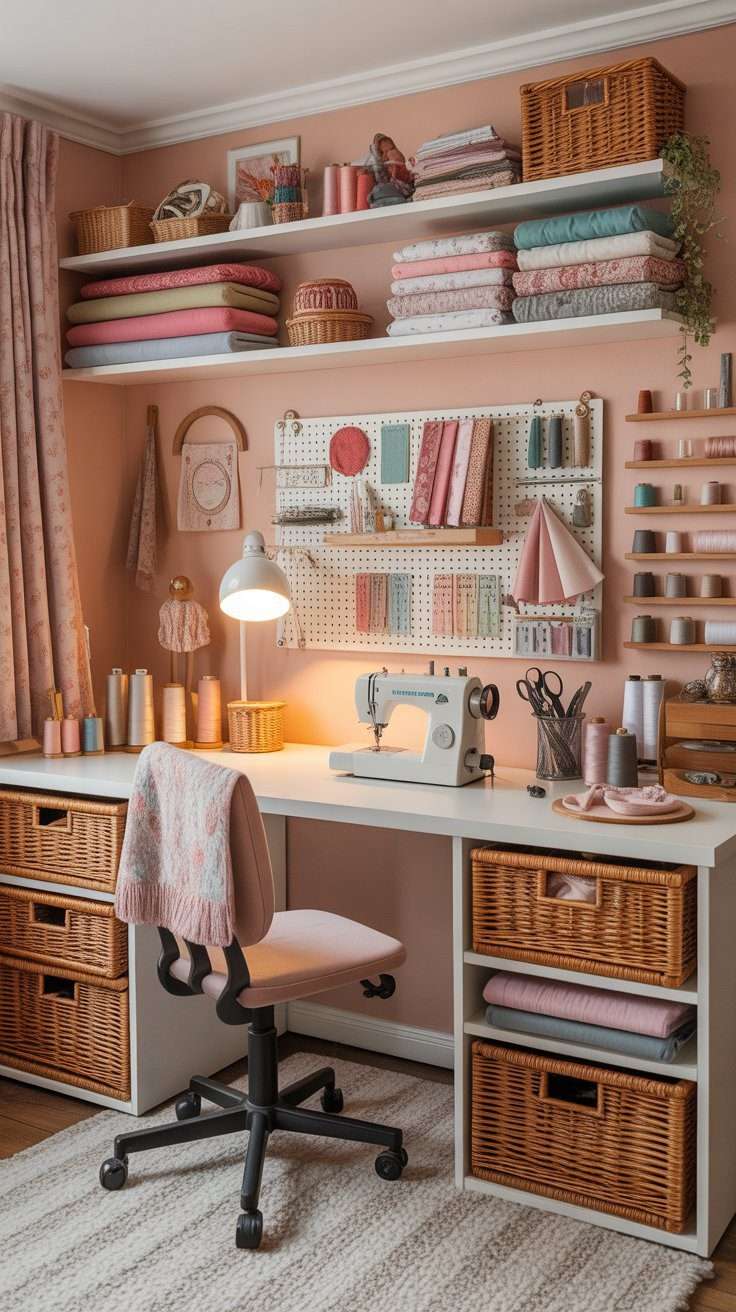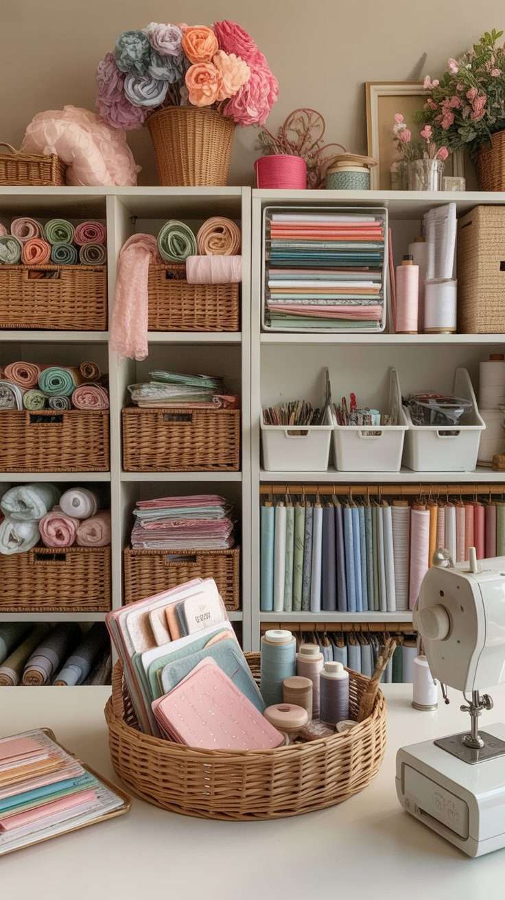 A lot of rooms start feeling stressful when every surface becomes a half-workstation. The desk holds ribbon, the side table holds scissors, the floor has baskets, and the shelf becomes a place for unfinished projects. When that happens, the room stops supporting your workflow.