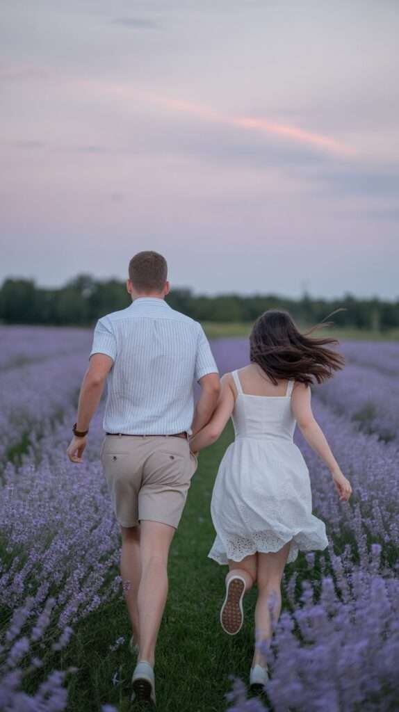 Fields filled with sunflowers, lavender, or wildflowers create breathtaking visual poetry. Soft pastels, wide landscapes, and natural light produce magical shots. When the couple runs through the field or dances between the flowers, the movement gives the images a cinematic feel.