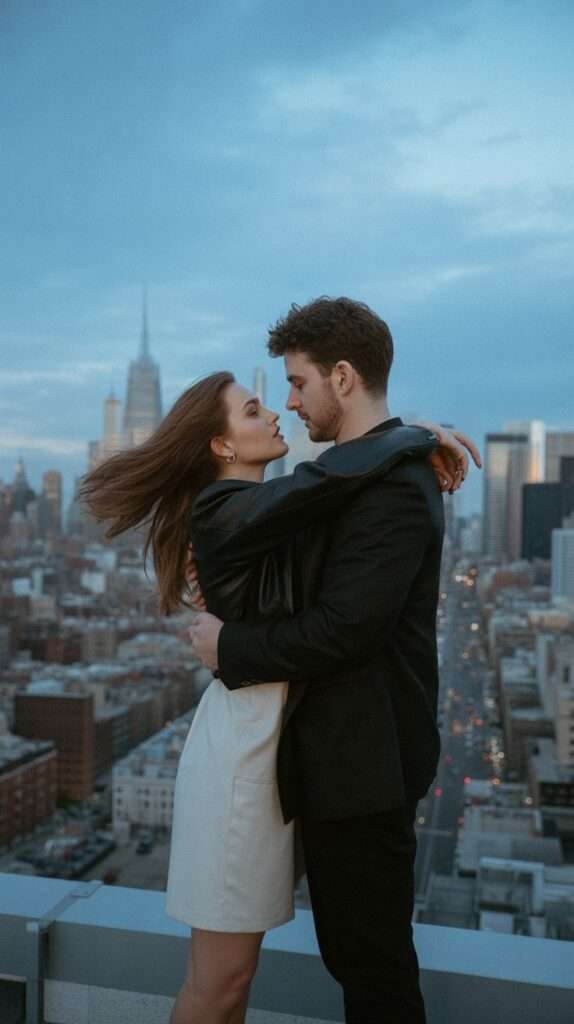 Think city skyline, wind tousling the hair, and outfits that look straight out of Vogue. A rooftop pre-wedding shoot captures power, confidence, and the feeling of we’re ready to take on the world together. If you want bold, modern and fashion-forward photos, this is THE one. Night shots with blurred city lights make everything even more magical.