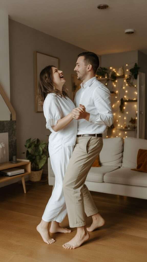 No posing. No pressure. Just the couple cooking together, dancing barefoot in the living room, or cuddling on the couch. These photos capture the essence of real love — fun, messy, soft, personal. Your home becomes the perfect storytelling backdrop.
