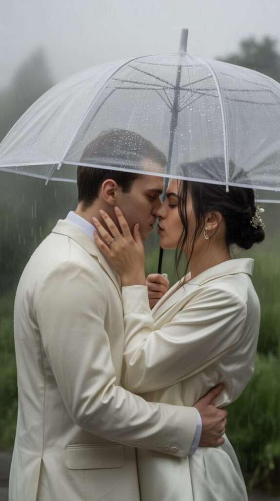 7. Rain Kiss Photoshoot (Umbrella + Soft Motion Blur)