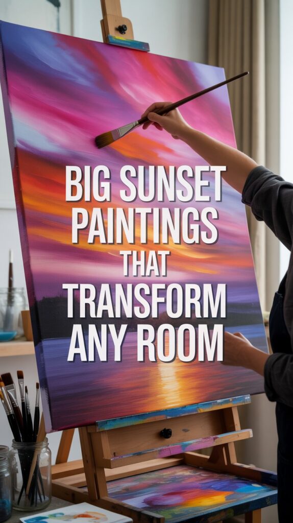 Sometimes small canvases don’t cut it. A big sunset painting (think 24×36 inches or larger) can turn your wall into a window to paradise.