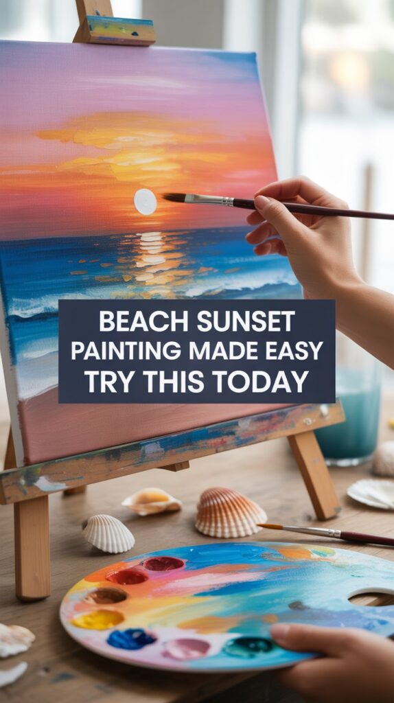 This is the ultimate guide for anyone wondering how to paint a beach sunset or just searching for easy sunset painting ideas that work on any canvas size.
