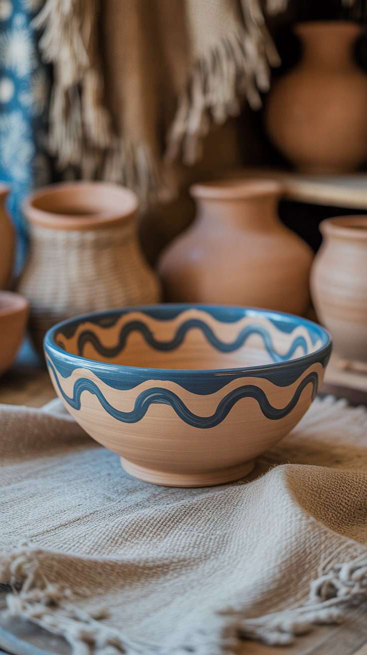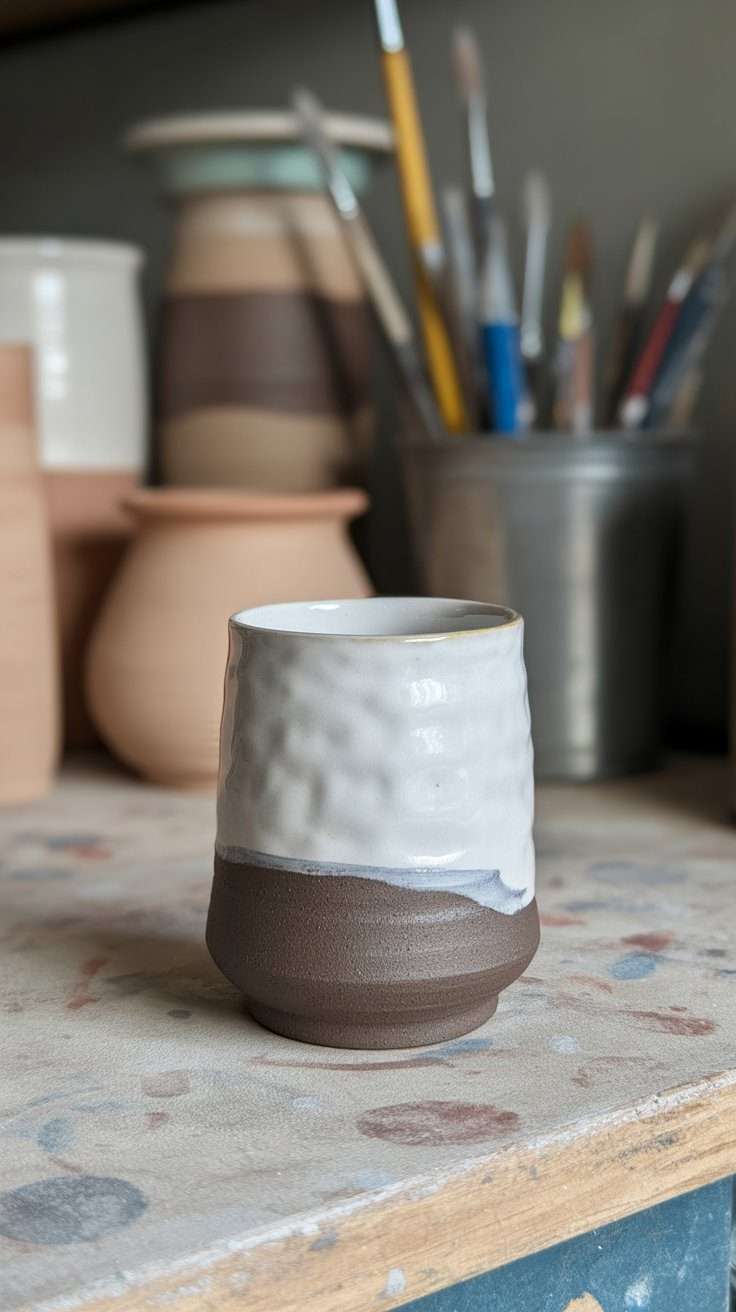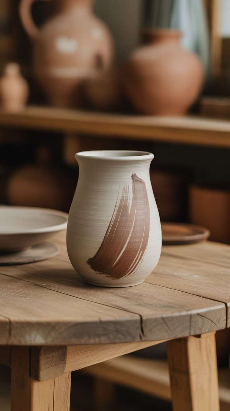 A warm earthy brushstroke can give pottery a slightly rustic look while still keeping the design simple. It feels handmade in the best way.