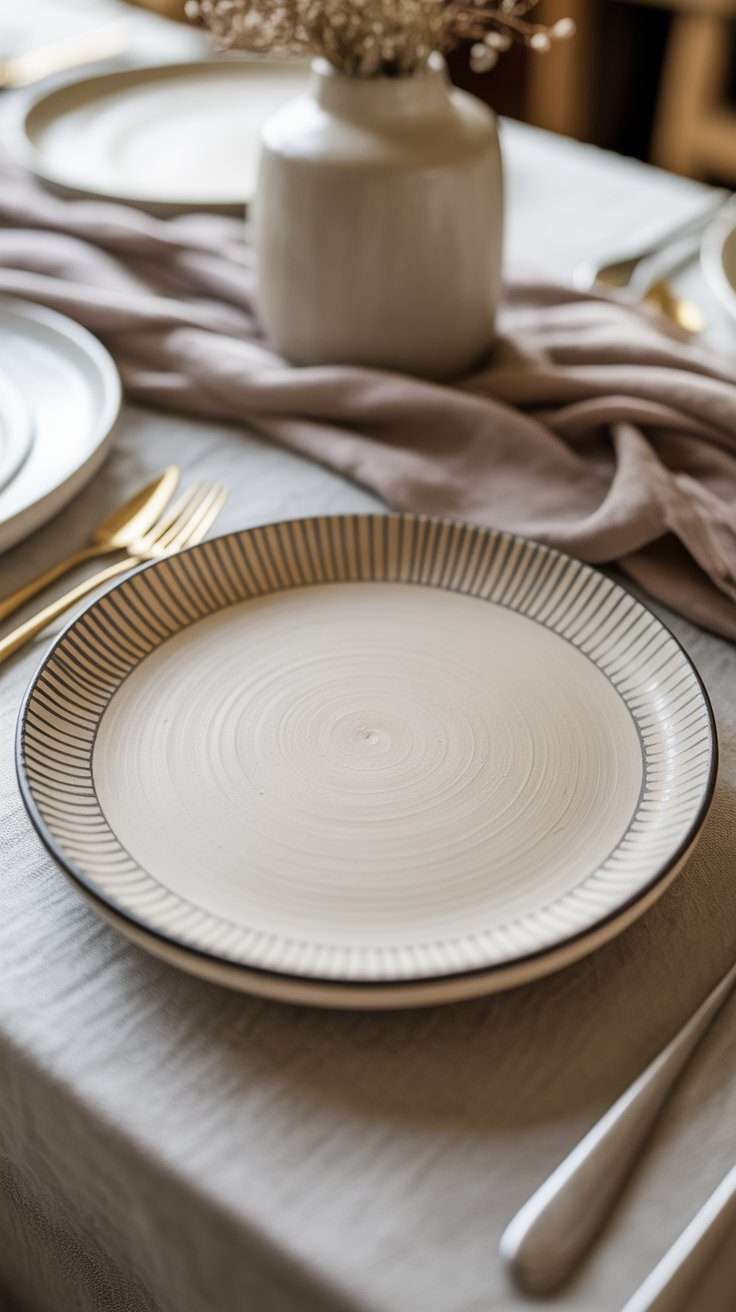 A few thin lines near the edge of a plate or bowl look especially pretty on a dining table. The design is subtle, but it still makes the whole piece feel more polished.