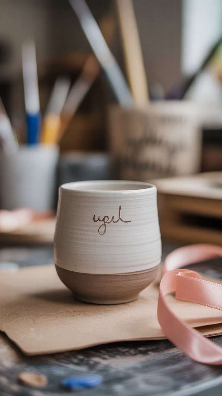 A tiny word like “joy” or “home” makes painted pottery feel like a thoughtful gift. It stays simple, but still feels personal and meaningful.