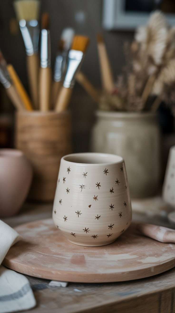 Tiny painted stars are one of those designs that feel simple and fun at the same time. They add personality to a mug or dish without making the piece feel too busy.