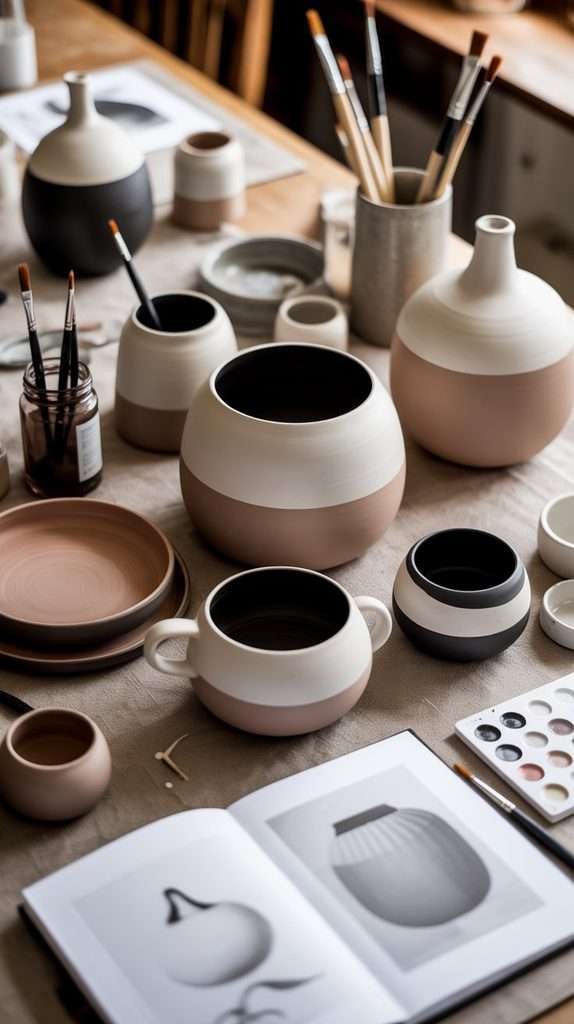 If you want something more elevated, stick to one color family. Black on cream, white on taupe, or rust on blush can make simple ceramic painting look much more high-end.
