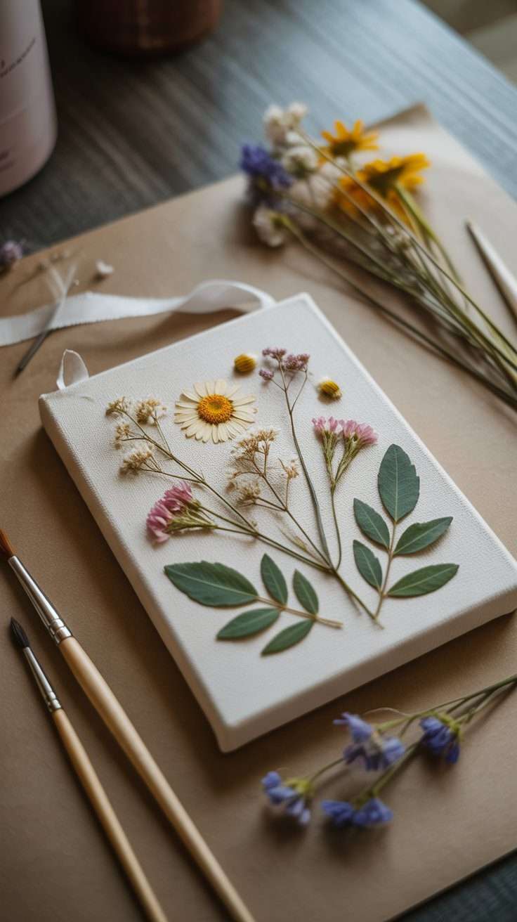 I like this idea when I want the project to feel more like handmade decor. A small canvas with a soft painted background can make pressed flowers stand out beautifully.