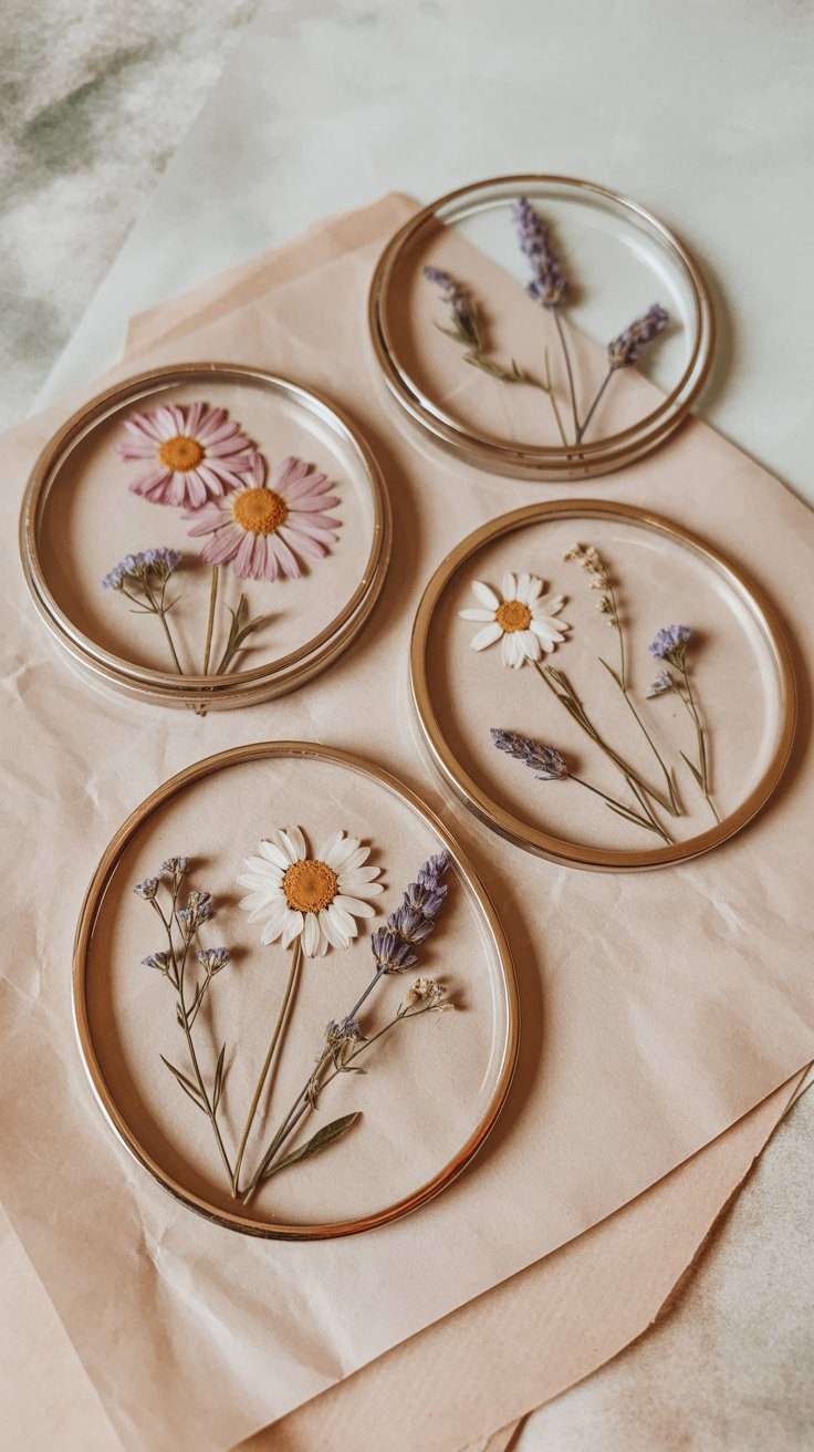 3. Pressed Flower Coasters