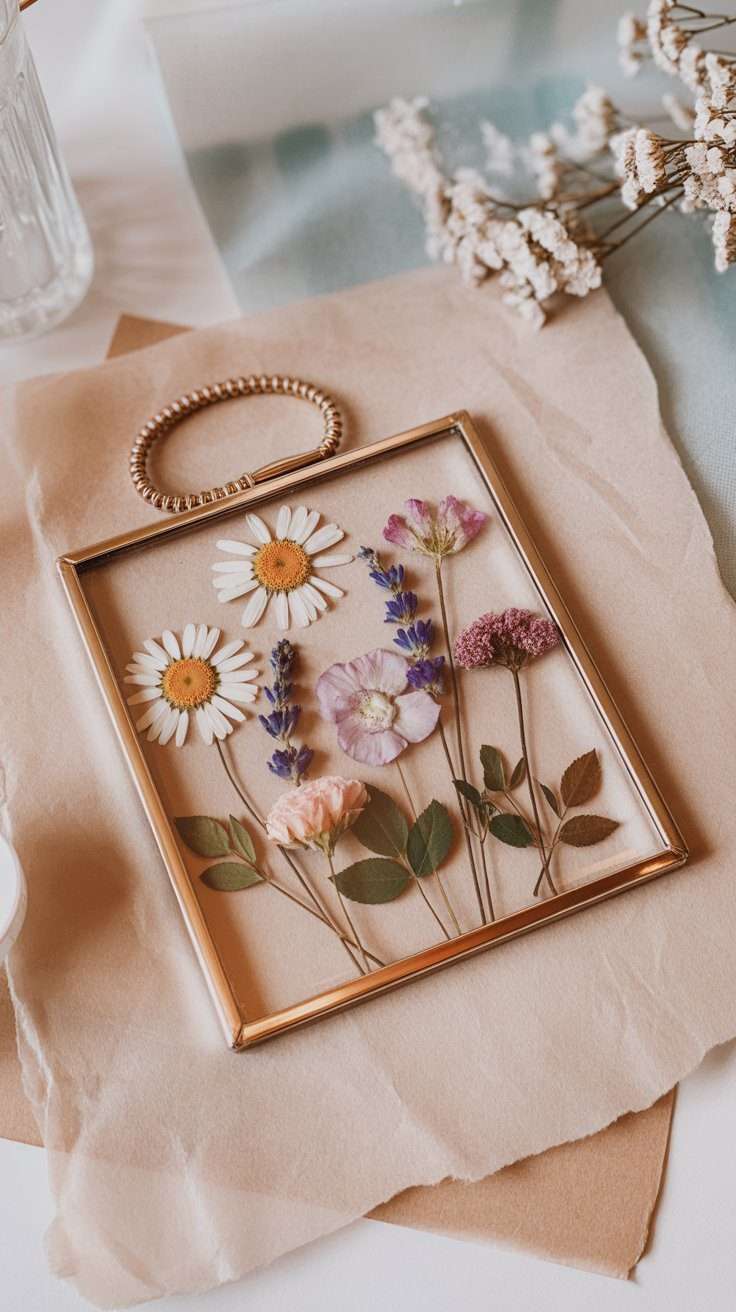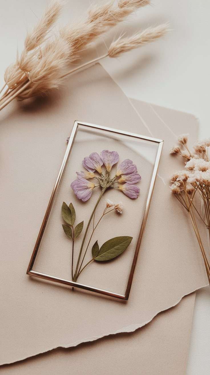 The best way to make pressed flowers look delicate and modern is to place them inside a glass frame. The clear background gives the flowers that pretty floating effect without making the project feel heavy.