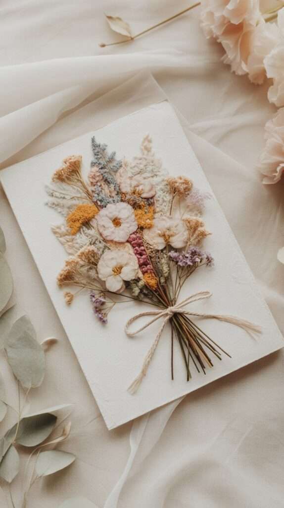 Handmade cards never go out of style, especially when combined with pressed flowers craft ideas. They look elegant, personal, and make the simplest note feel special. Great for weddings, birthdays, or anniversaries.