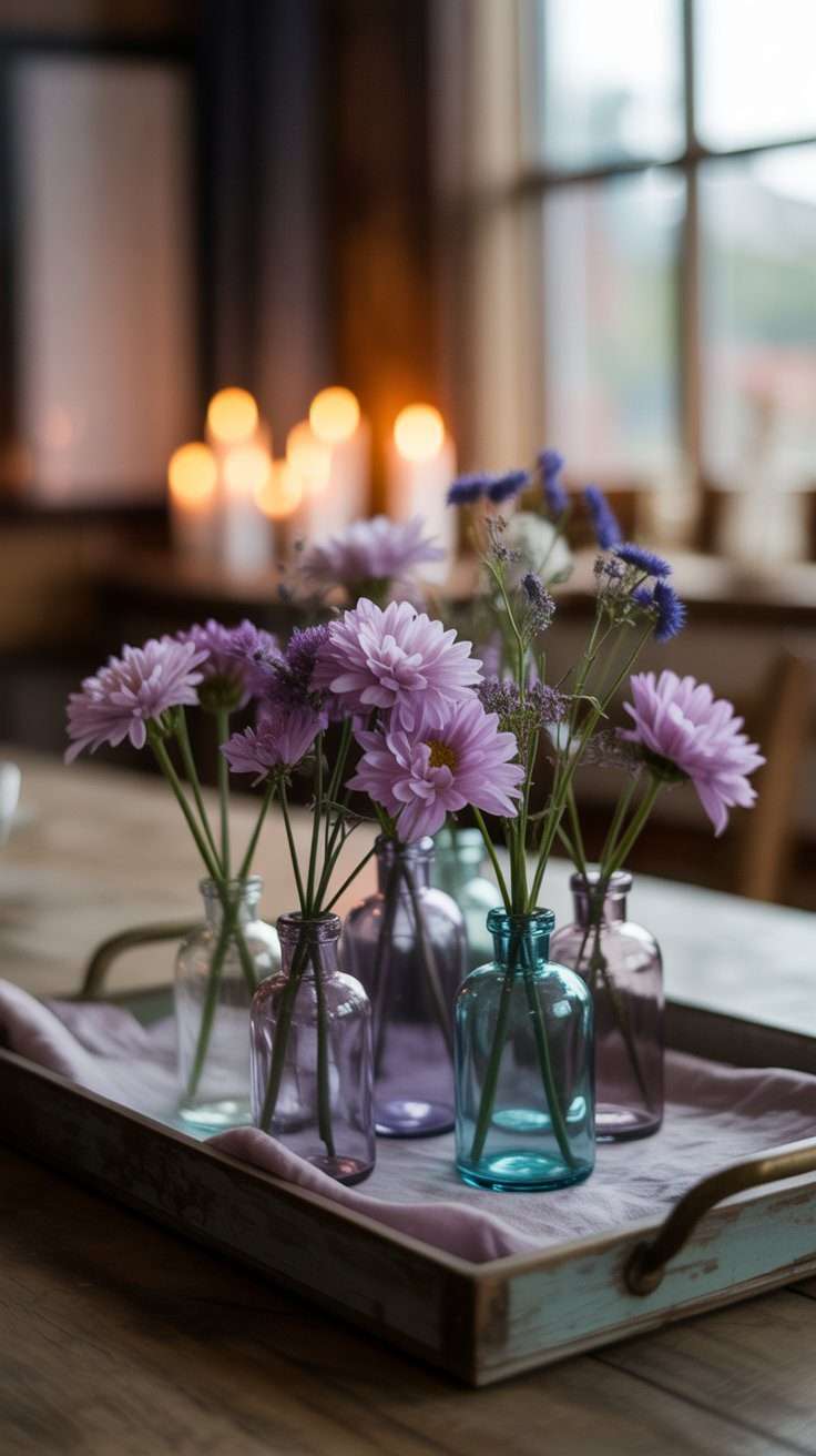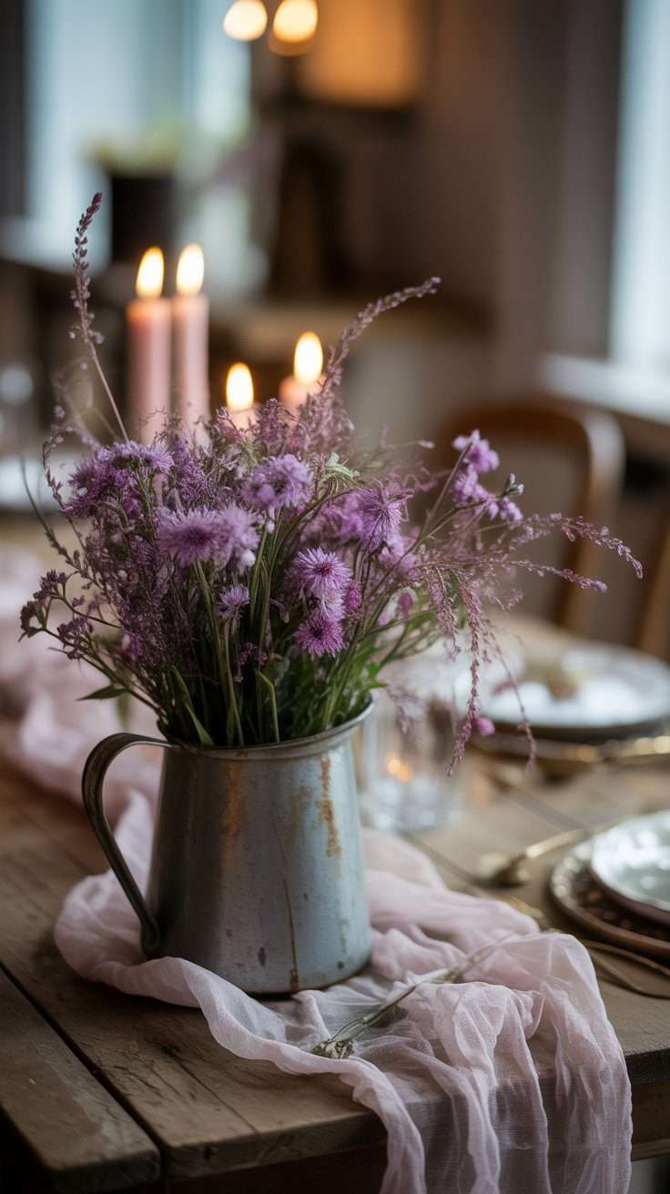 If you want a more casual rustic look, purple flowers in mason jars still work beautifully. The key is making them feel intentional with the rest of the table styling.