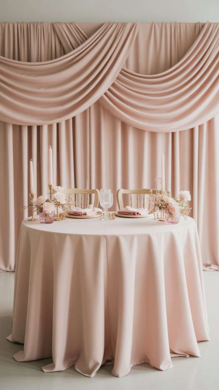 19. Add draped pink fabric behind the sweetheart table