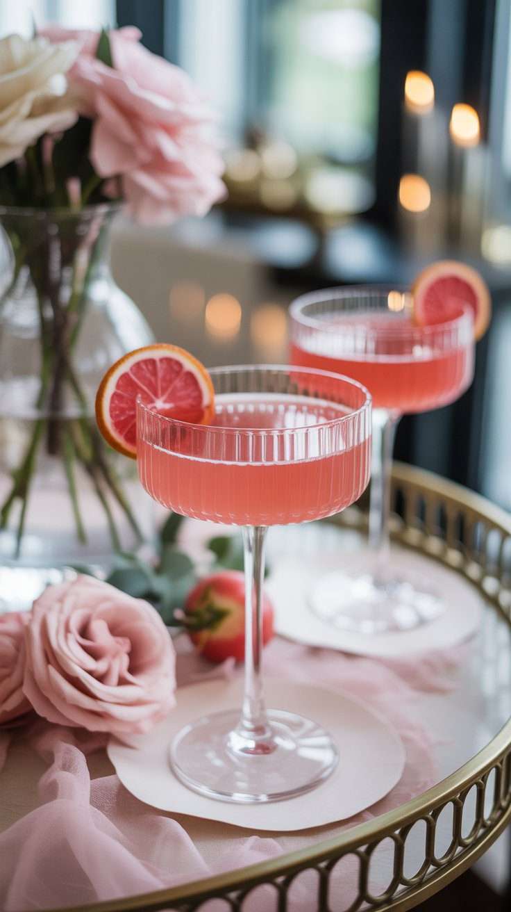 A signature cocktail instantly makes the celebration feel more special. Something with berries, rosé tones, edible flowers, or citrus can become part of the décor just as much as the menu.