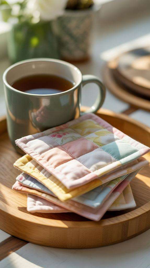 3) Quilted Mug Rugs / Coasters (mini-quilt vibes)