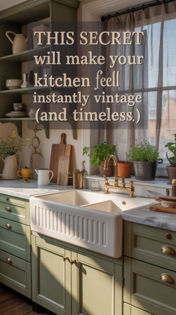 Step by Step: If renovating, invest in a white ceramic apron sink. Pair with vintage-style brass or black fixtures. Add open shelves nearby with mason jars and pottery.